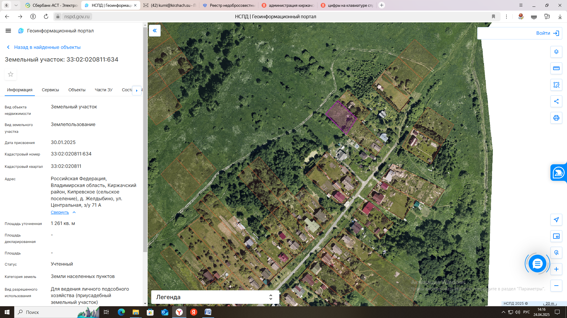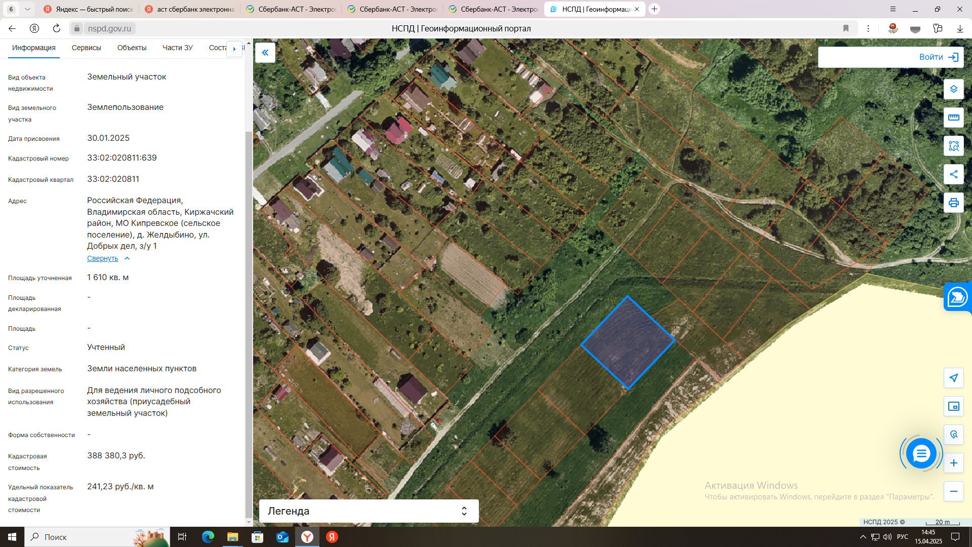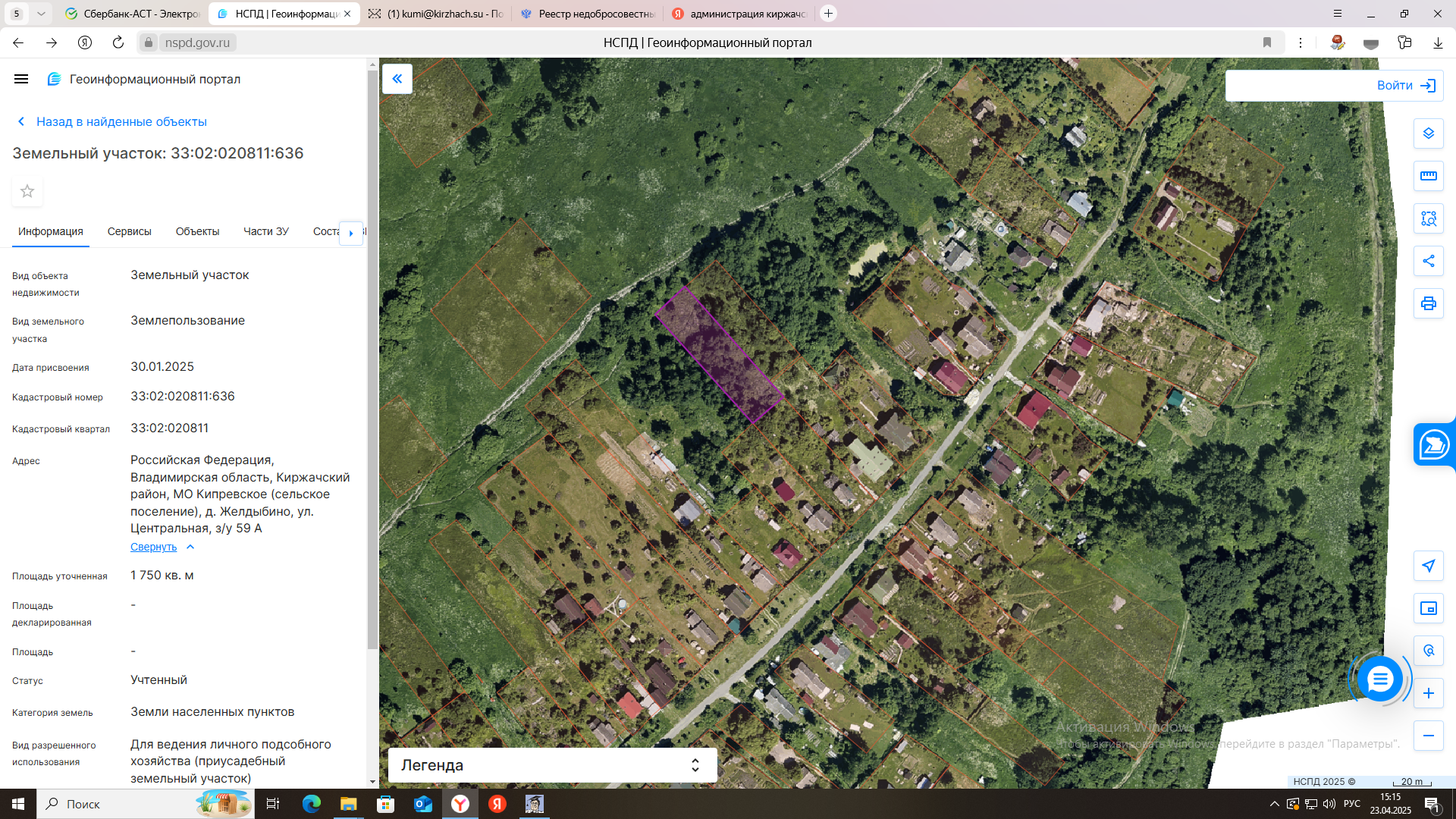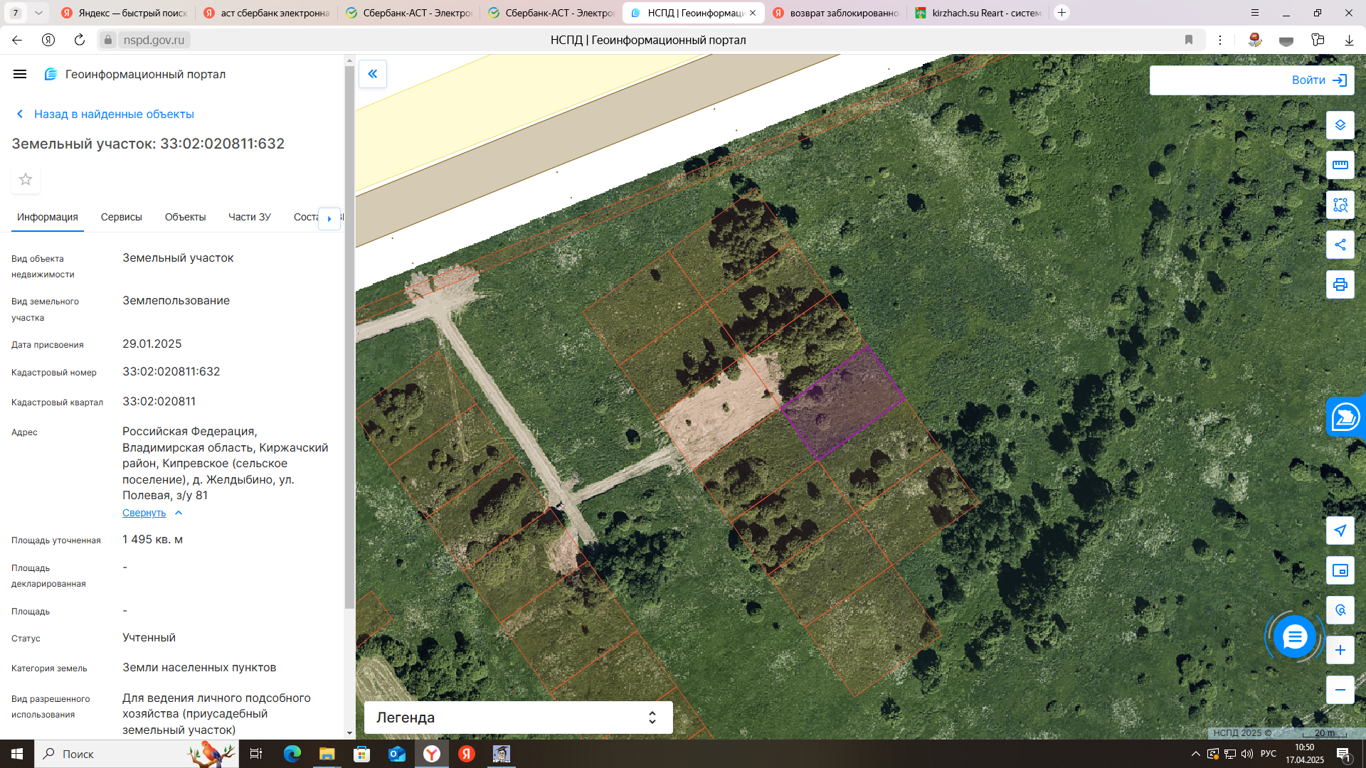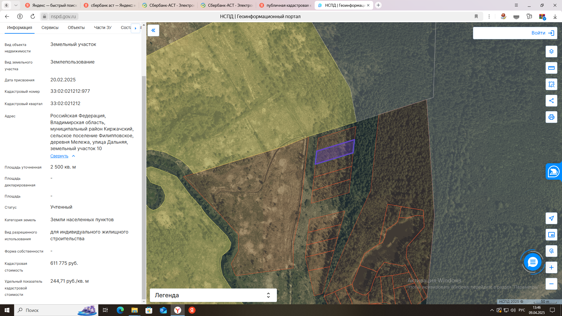 электронный аукцион на право заключения договора купли-продажи земельного участка с кадастровым номером 33:02:021212:977, площадью 2500 кв. м, из категории земель населенных пунктов, с разрешенным использованием: для индивидуального жилищного строитель