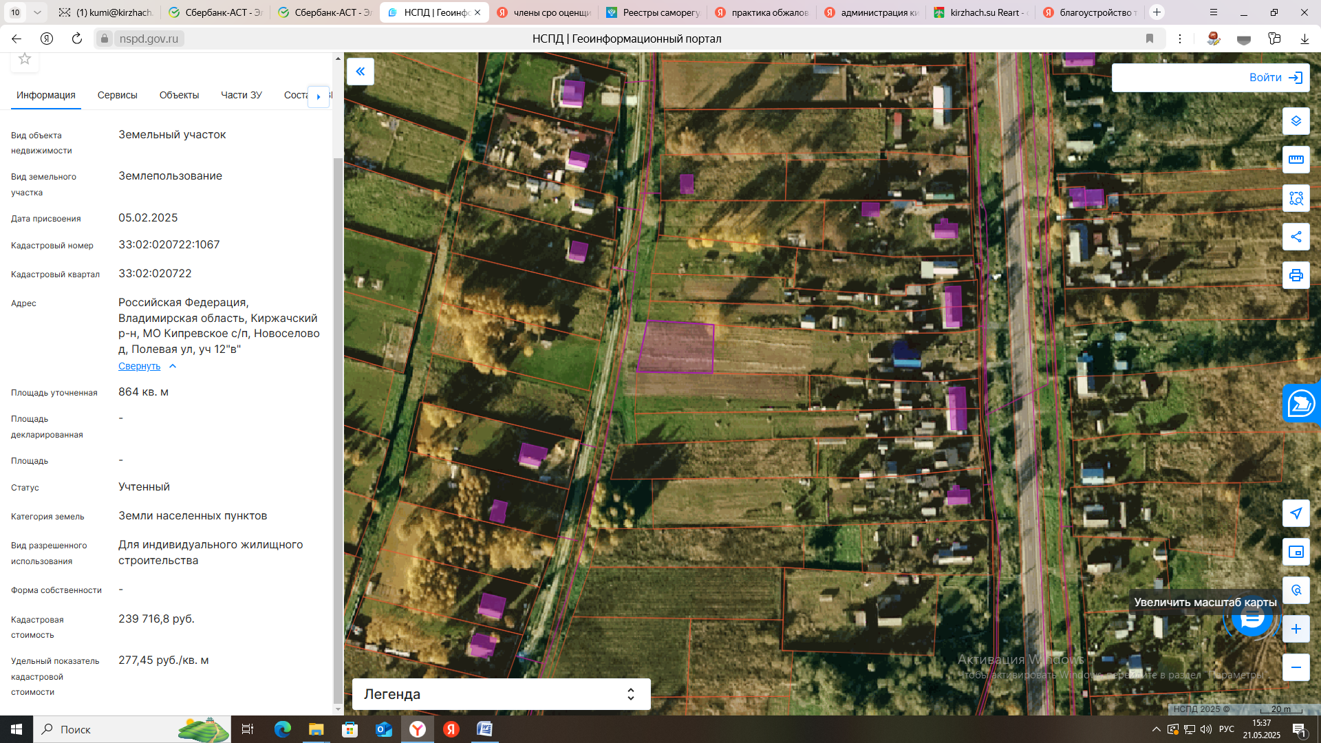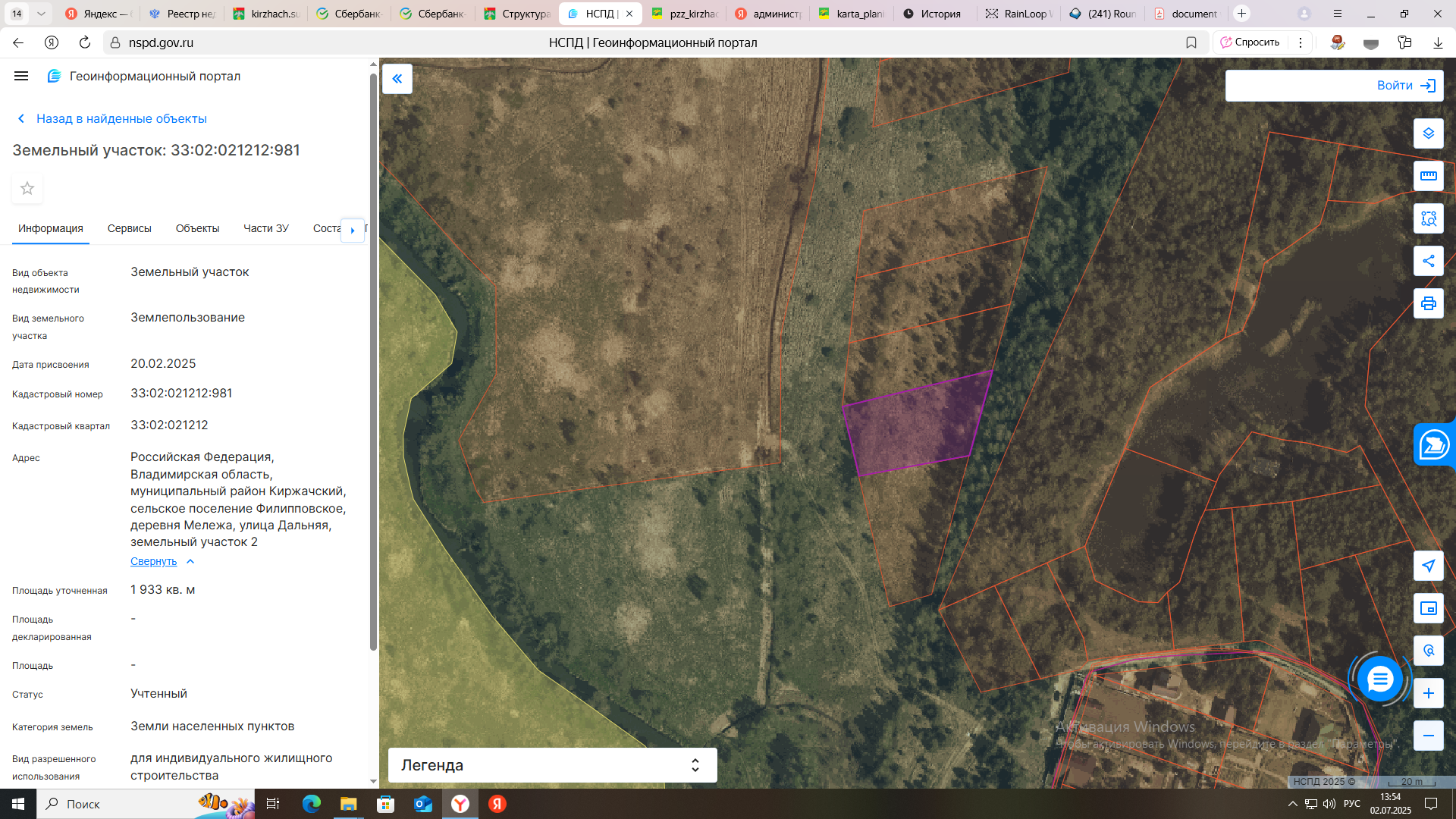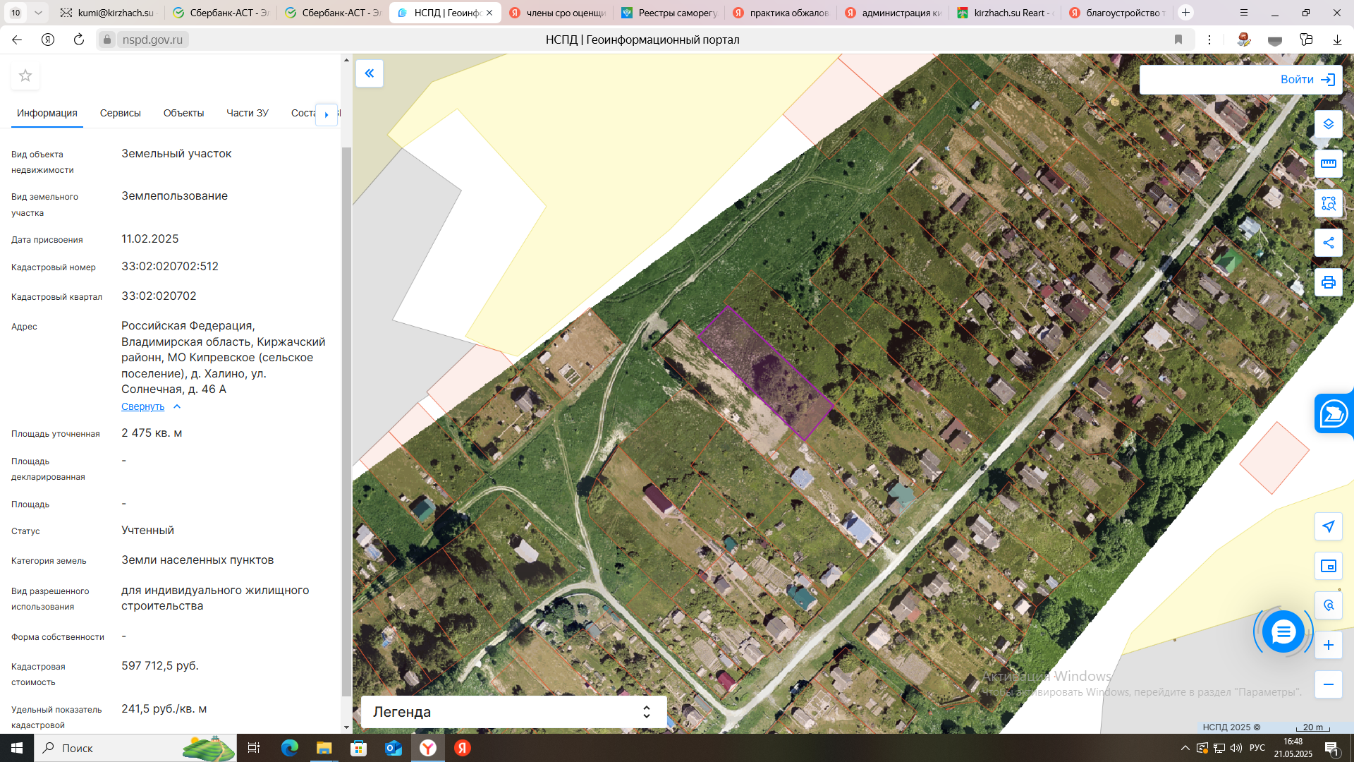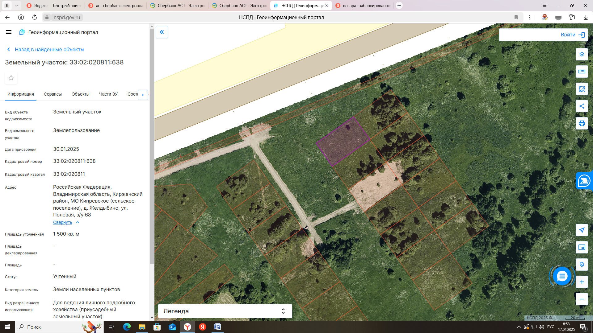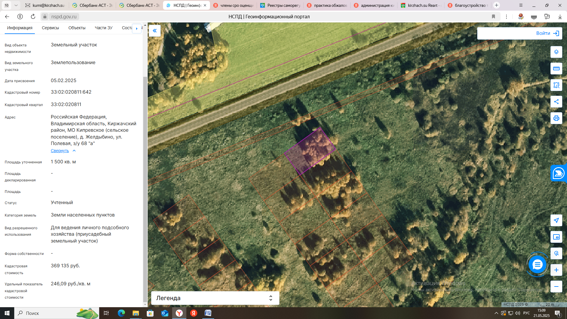 электронный аукцион на право заключения договора купли-продажи земельного участка с кадастровым номером 33:02:021212:977, площадью 2500 кв. м, из категории земель населенных пунктов, с разрешенным использованием: для индивидуального жилищного строитель