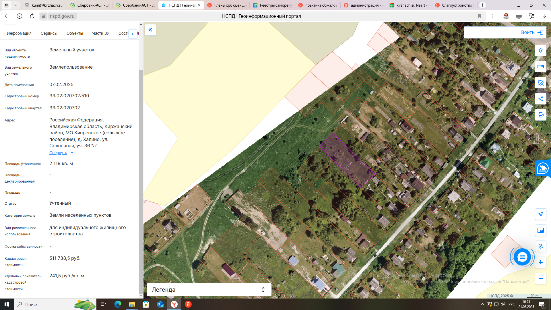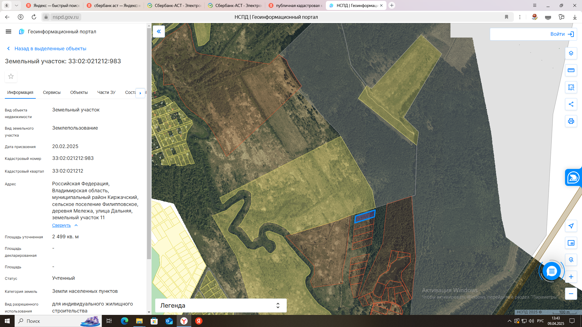 электронный аукцион на право заключения договора купли-продажи з/ у с кн 33:02:021212:983, площадью 2499 кв. м, из категории земель населенных пунктов, с разрешенным использованием: для ИЖС