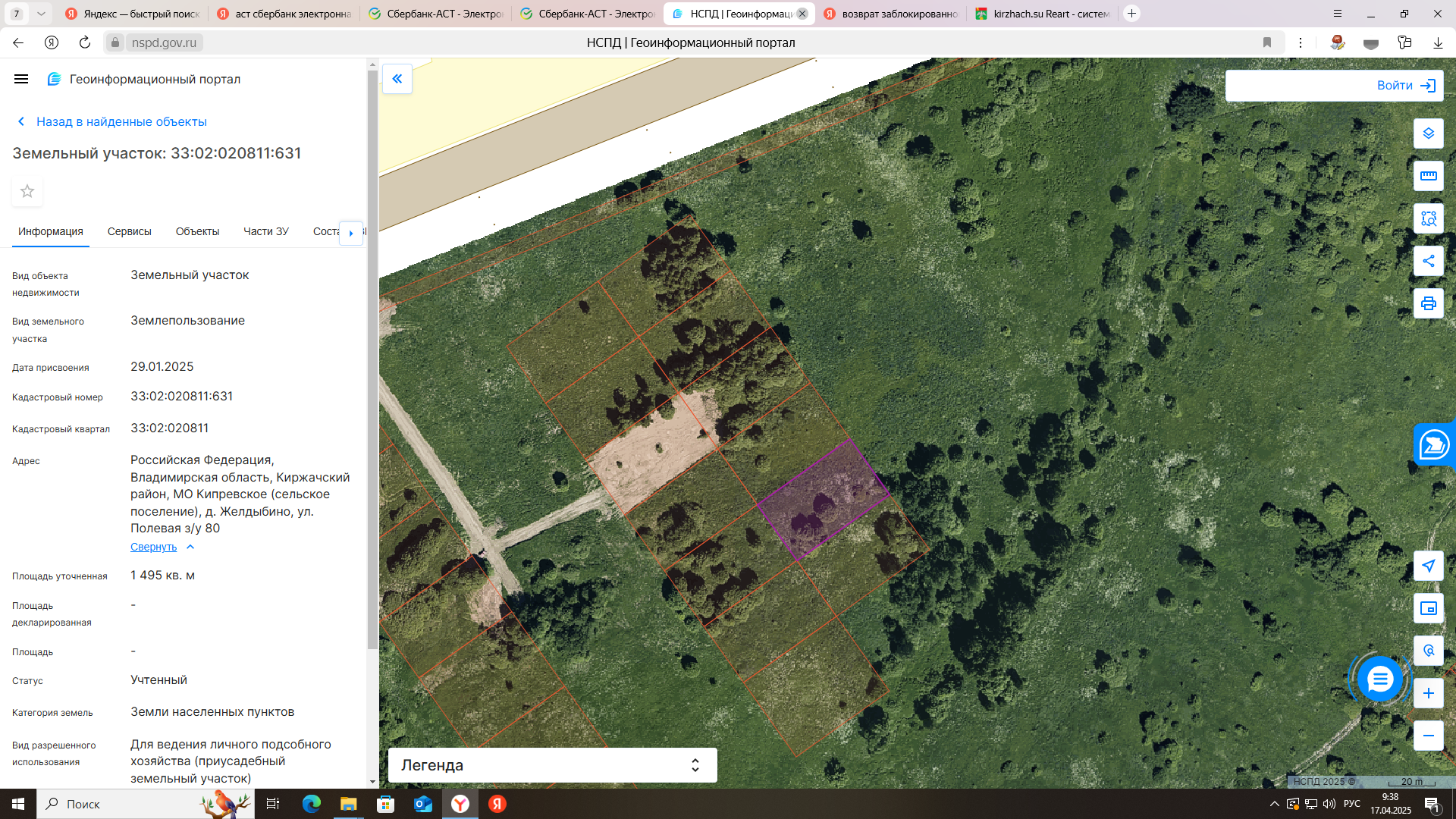 электронный аукцион на право заключения договора аренды земельного участка на срок 20 лет с кадастровым номером 33:02:020811:631, площадью 1495 кв. м, из категории земель населенных пунктов, с разрешенным использованием: для ведения личного подсобного хо