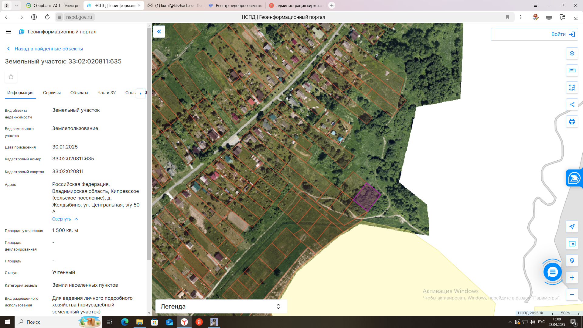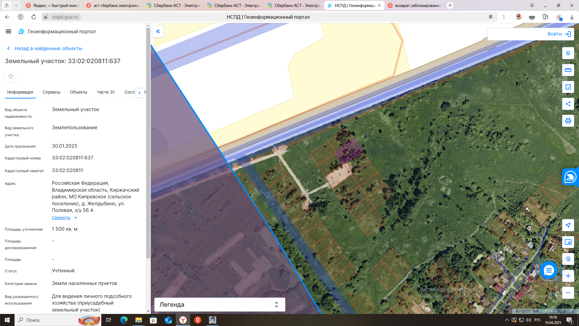 электронный аукцион на право заключения договора аренды земельного участка на срок 20 лет с кадастровым номером 33:02:020811:632, площадью 1495 кв. м, из категории земель населенных пунктов, с разрешенным использованием: для ведения личного подсобного хо