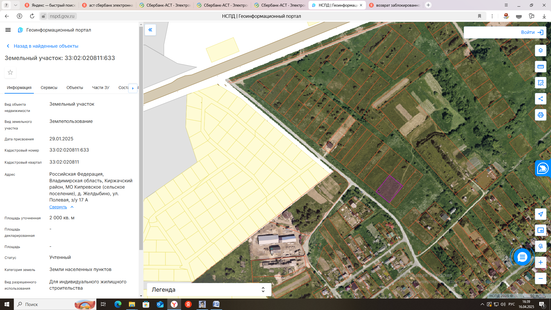 электронный аукцион на право заключения договора аренды земельного участка на срок 20 лет с кадастровым номером 33:02:020811:633, площадью 2000 кв. м, из категории земель населенных пунктов, с разрешенным использованием: для индивидуального жилищного стр