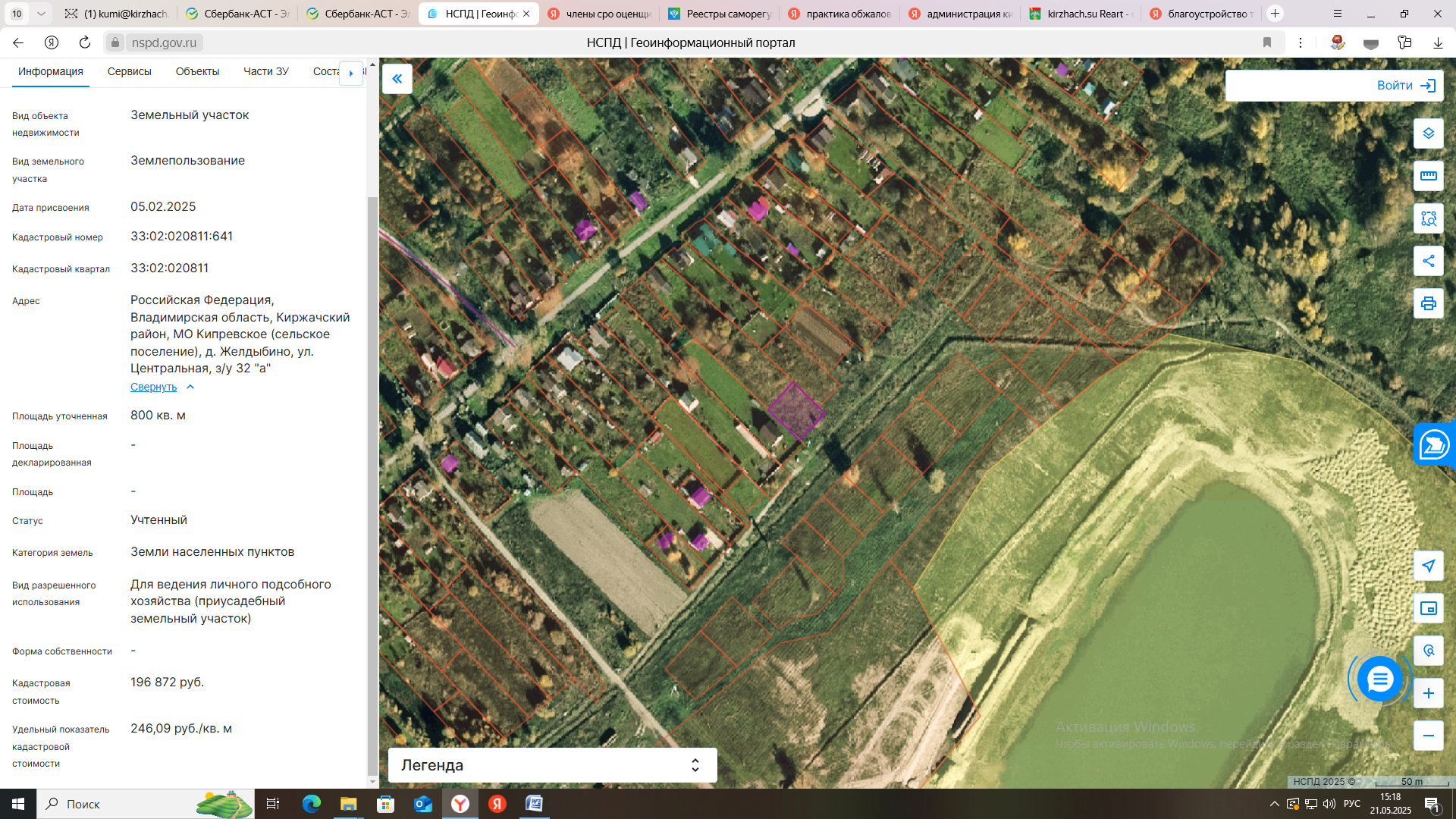 электронный аукцион на право заключения договора аренды земельного участка на срок 20 лет с кадастровым номером 33:02:020811:641 площадью 800 кв. м