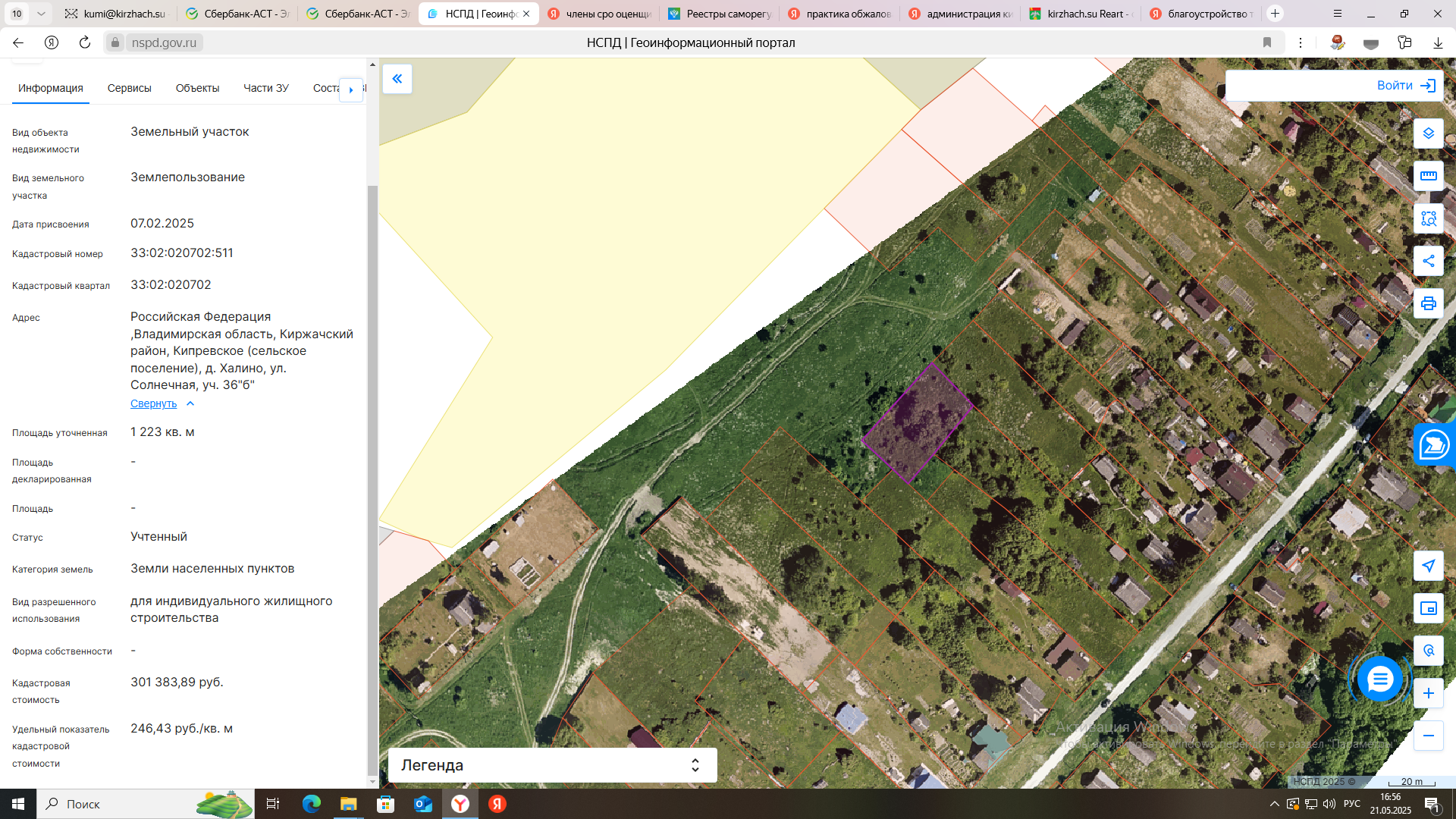 электронный аукцион на право заключения договора аренды земельного участка на срок 20 лет с кадастровым номером 33:02:020702:511 площадью 1223 кв. м