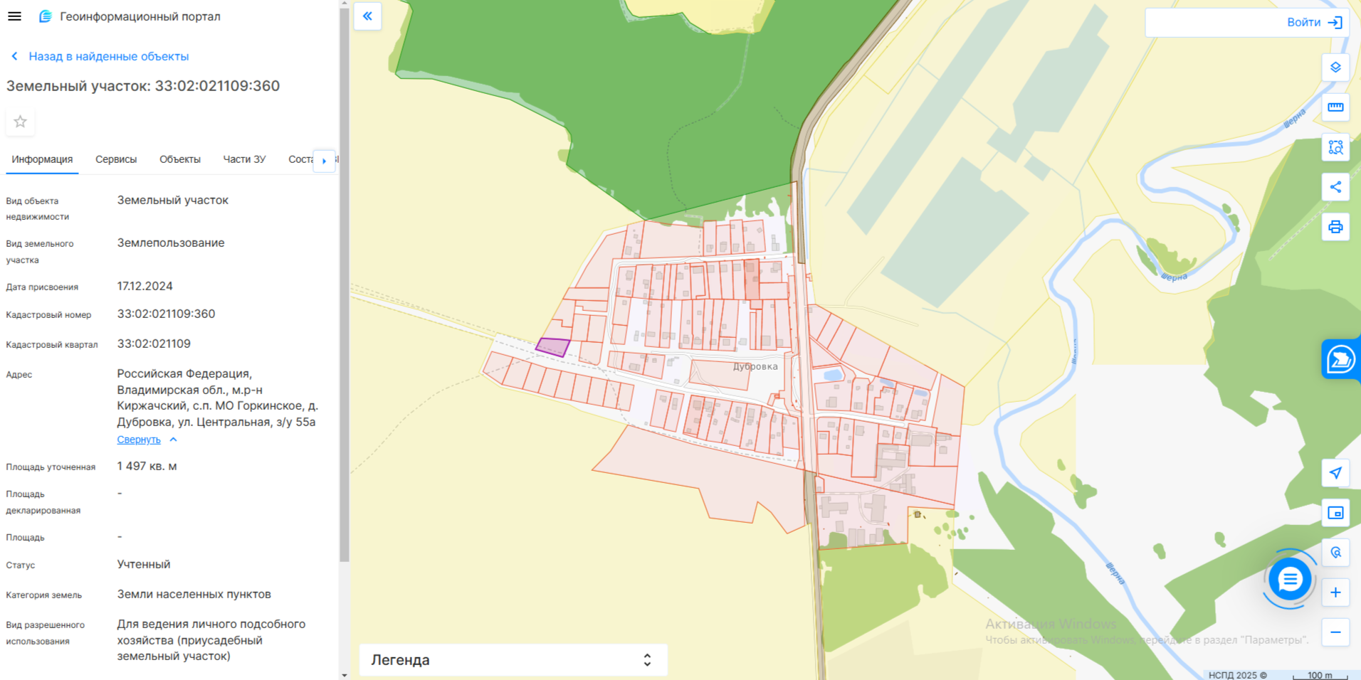 право аренды земельного учаска с кн 33:02:021109:360