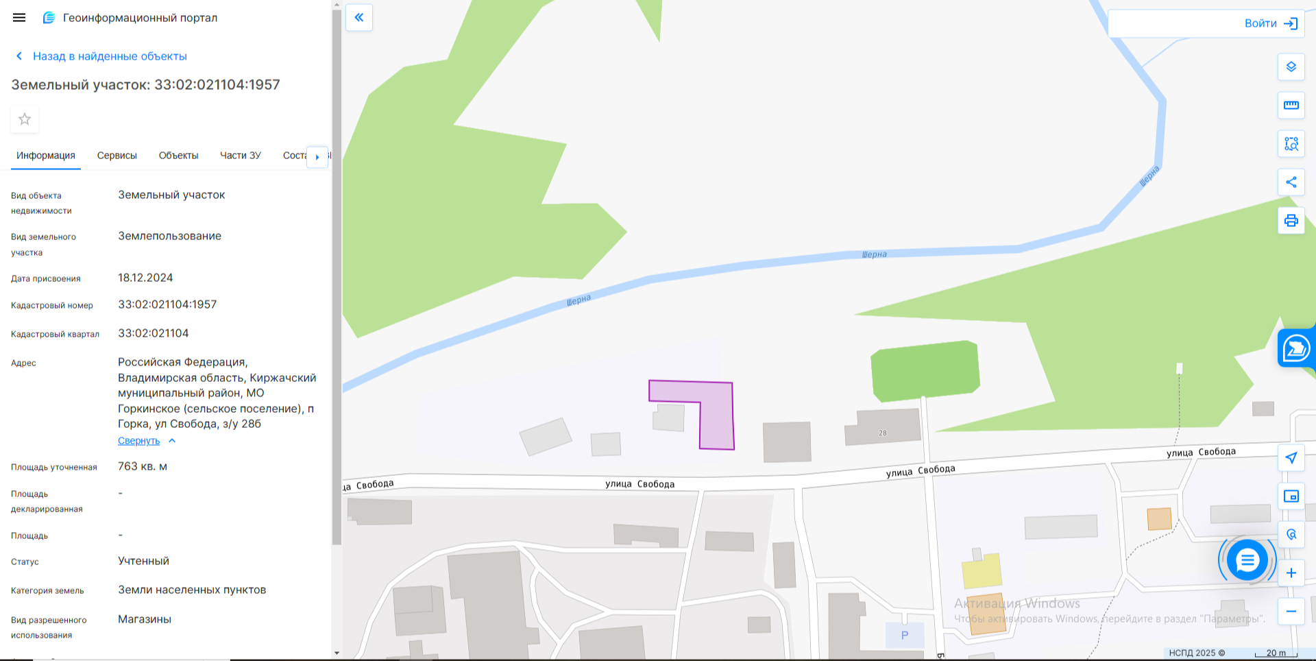 электронный аукцион на право заключения договора аренды земельного участка на срок 10 лет с кадастровым номером 33:02:021104:1957, площадью 763 кв. м, из категории земель населенных пунктов, с разрешенным использованием: магазины, расположенного по адрес