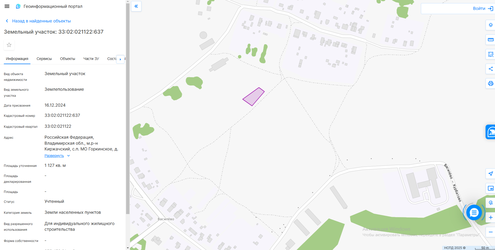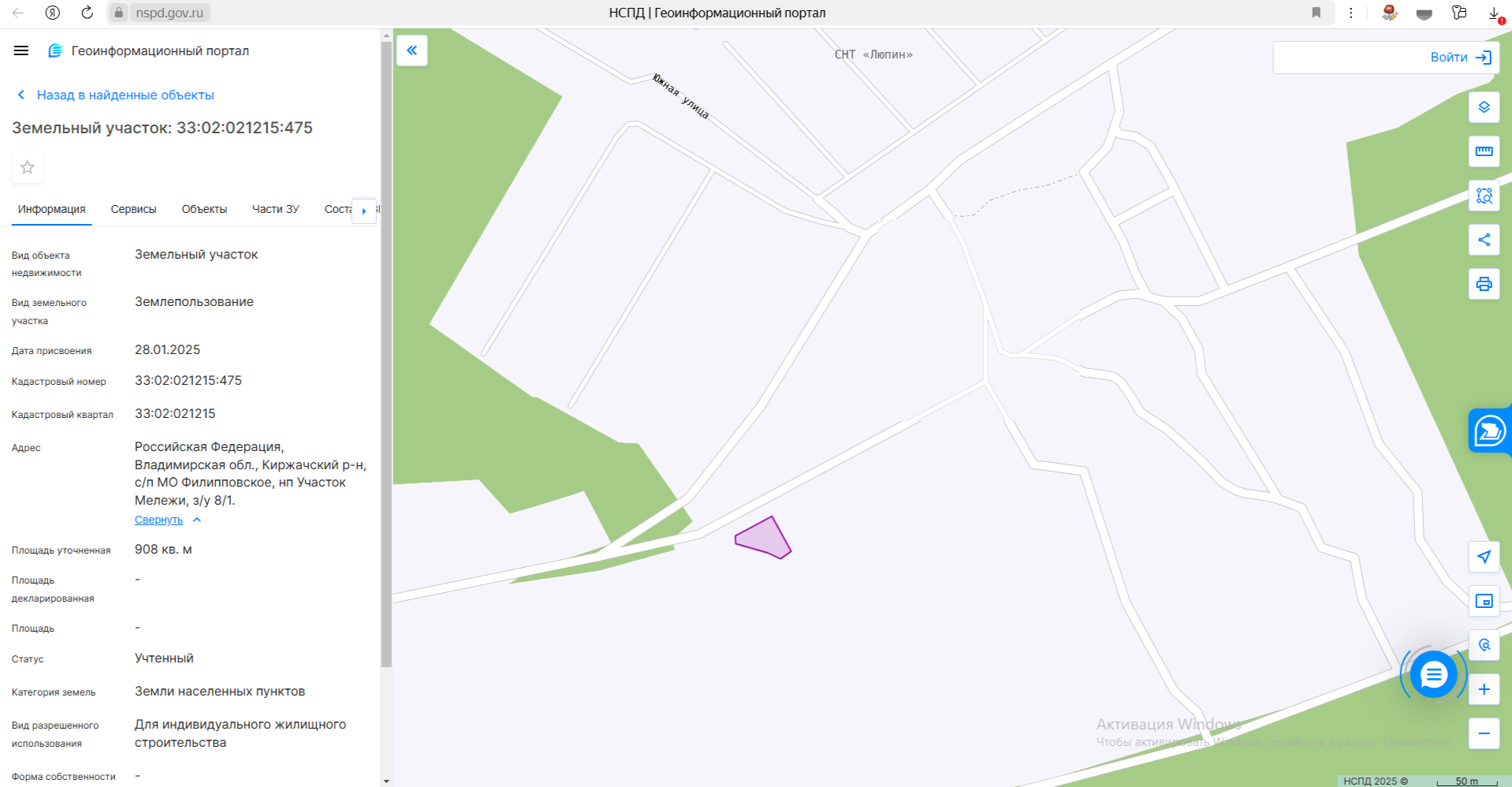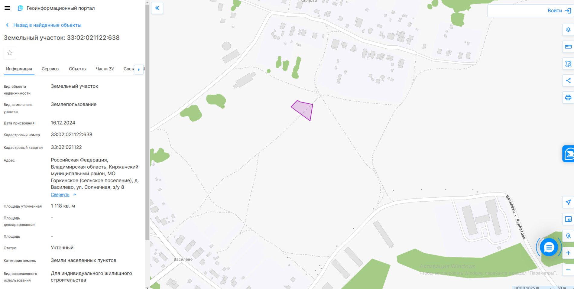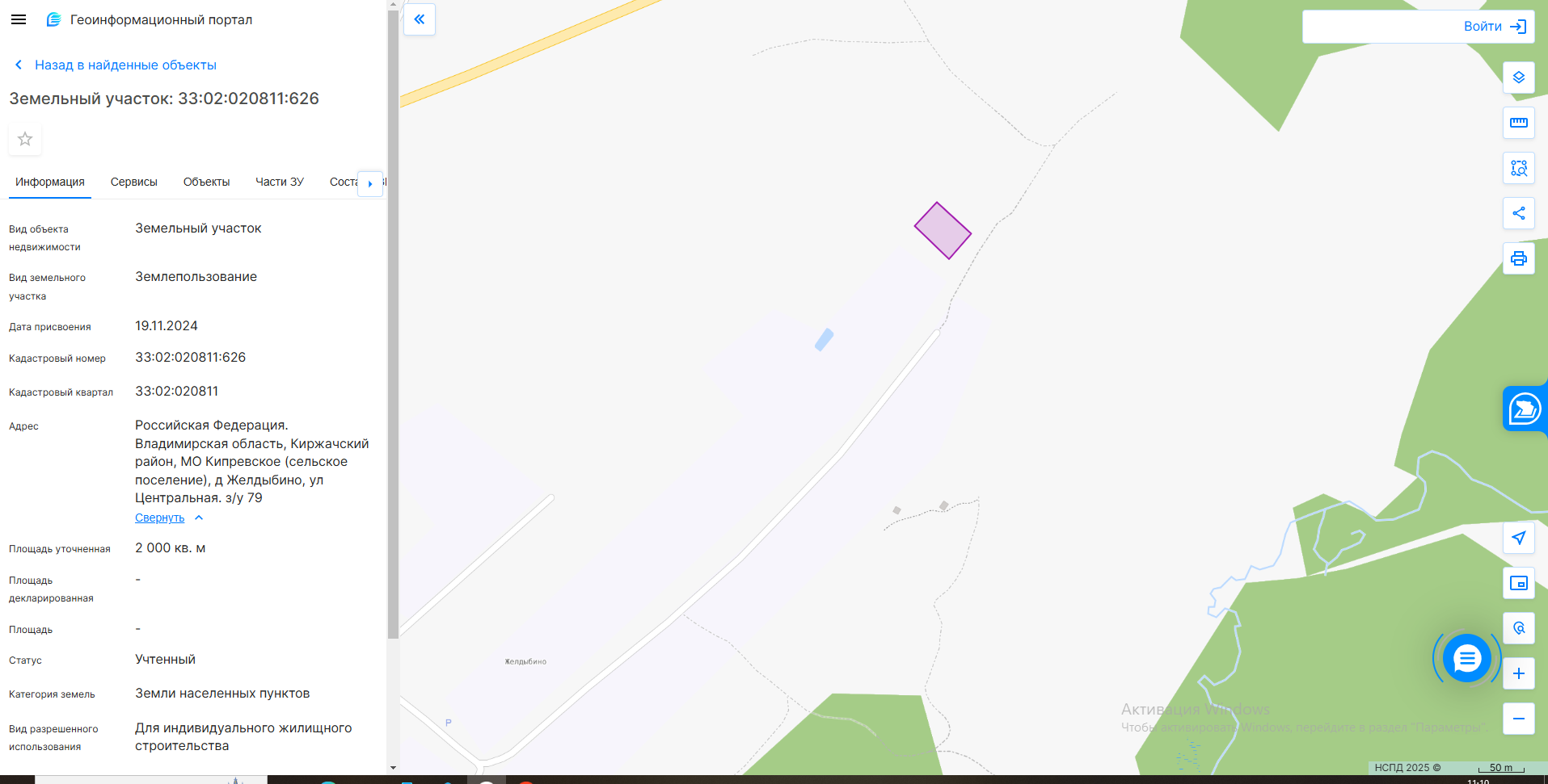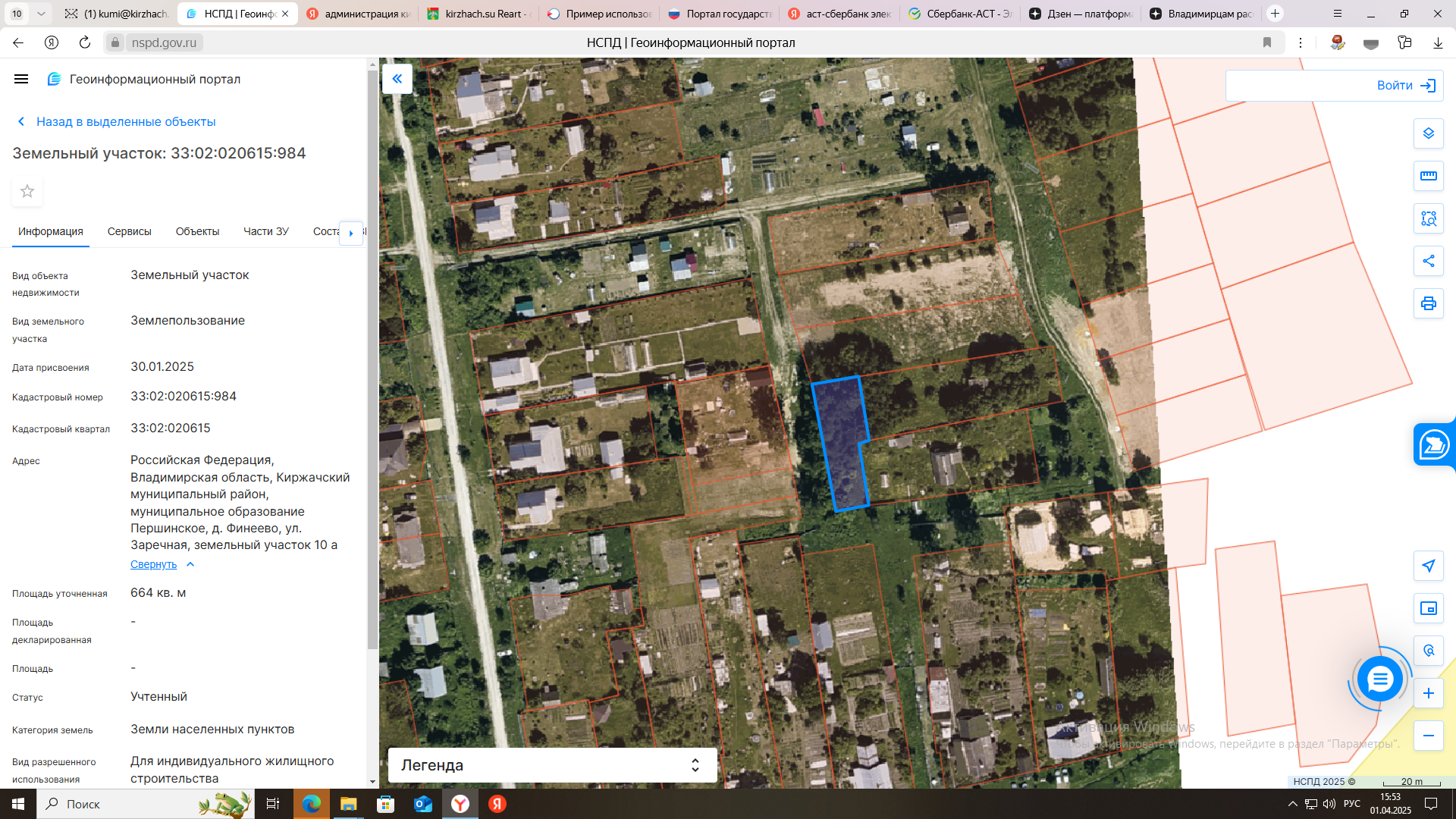 электронный аукцион на право заключения договора аренды земельного участка на срок 20 лет с кадастровым номером 33:02:020615:984, площадью 664 кв. м, из категории земель населенных пунктов, с разрешенным использованием: для индивидуального жилищного стро