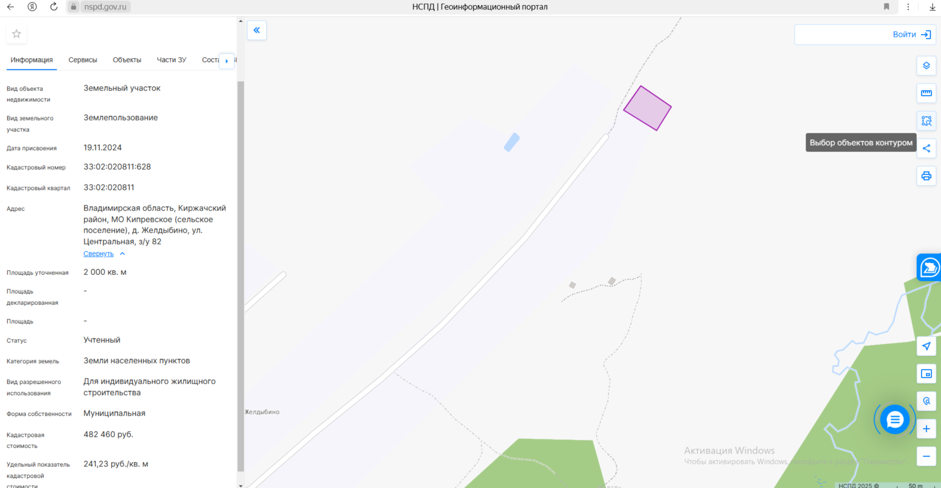 электронный аукцион на право заключения договора аренды земельного участка на срок 20 лет с кадастровым номером 33:02:020811:628, площадью 2000 кв. м, из категории земель населенных пунктов, с разрешенным использованием: для индивидуального жилищного стр