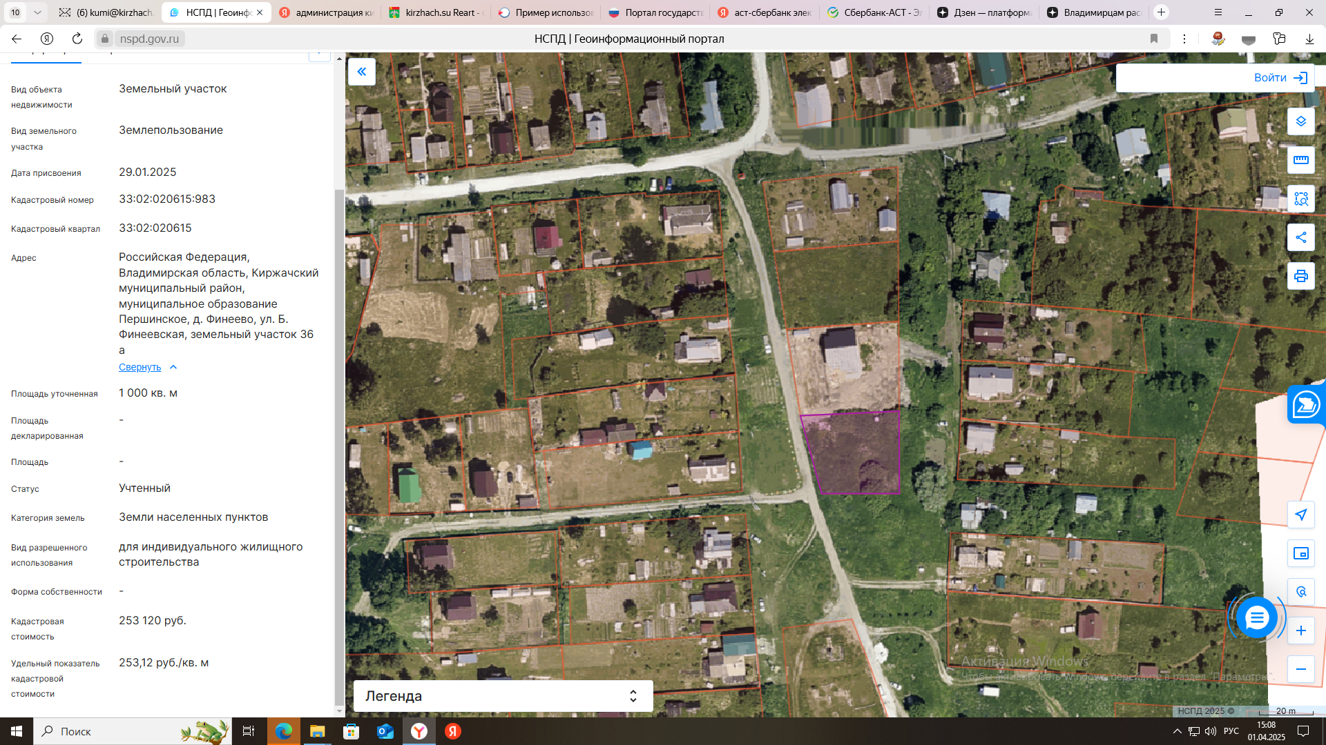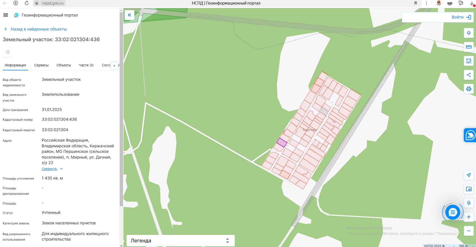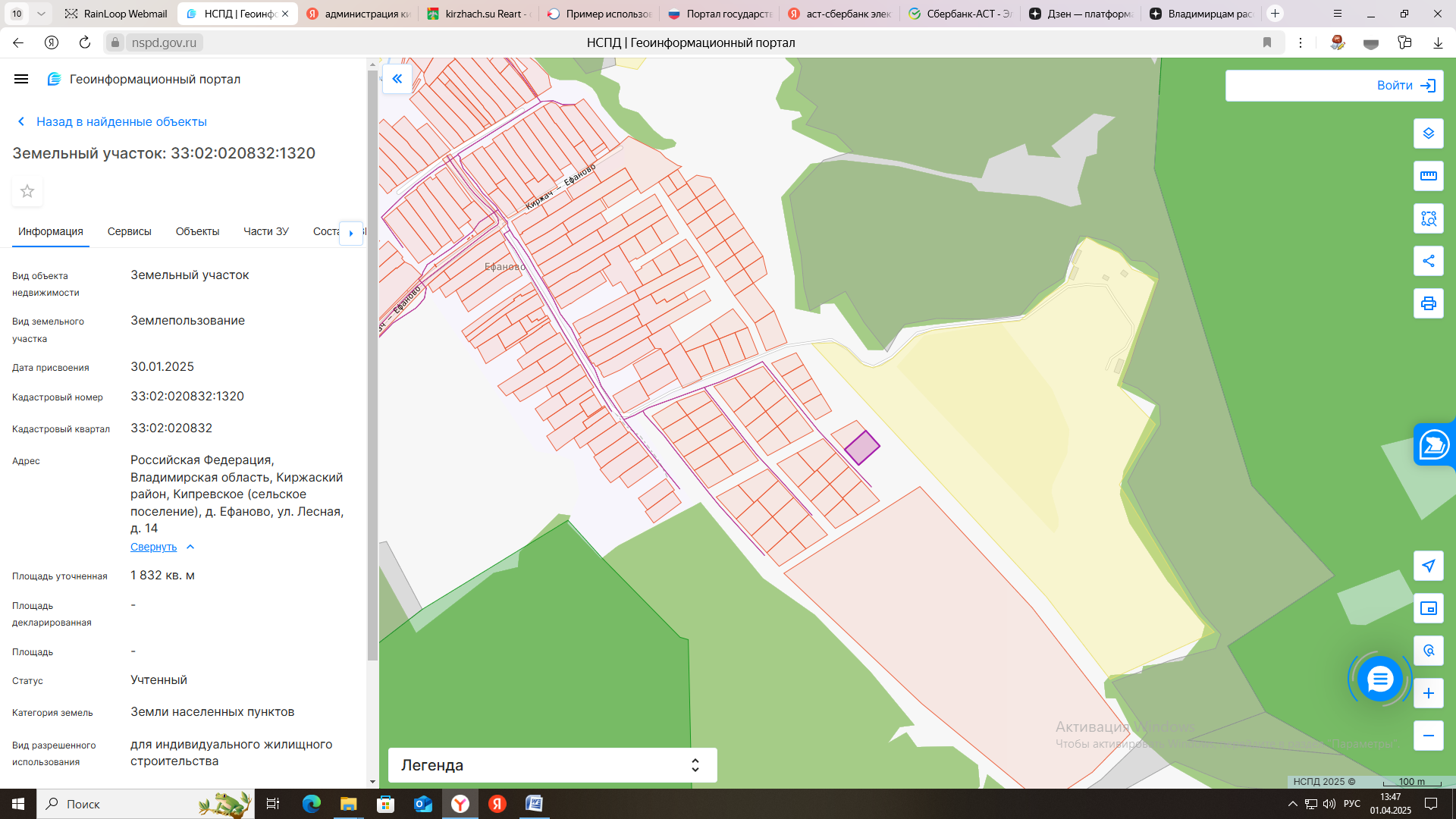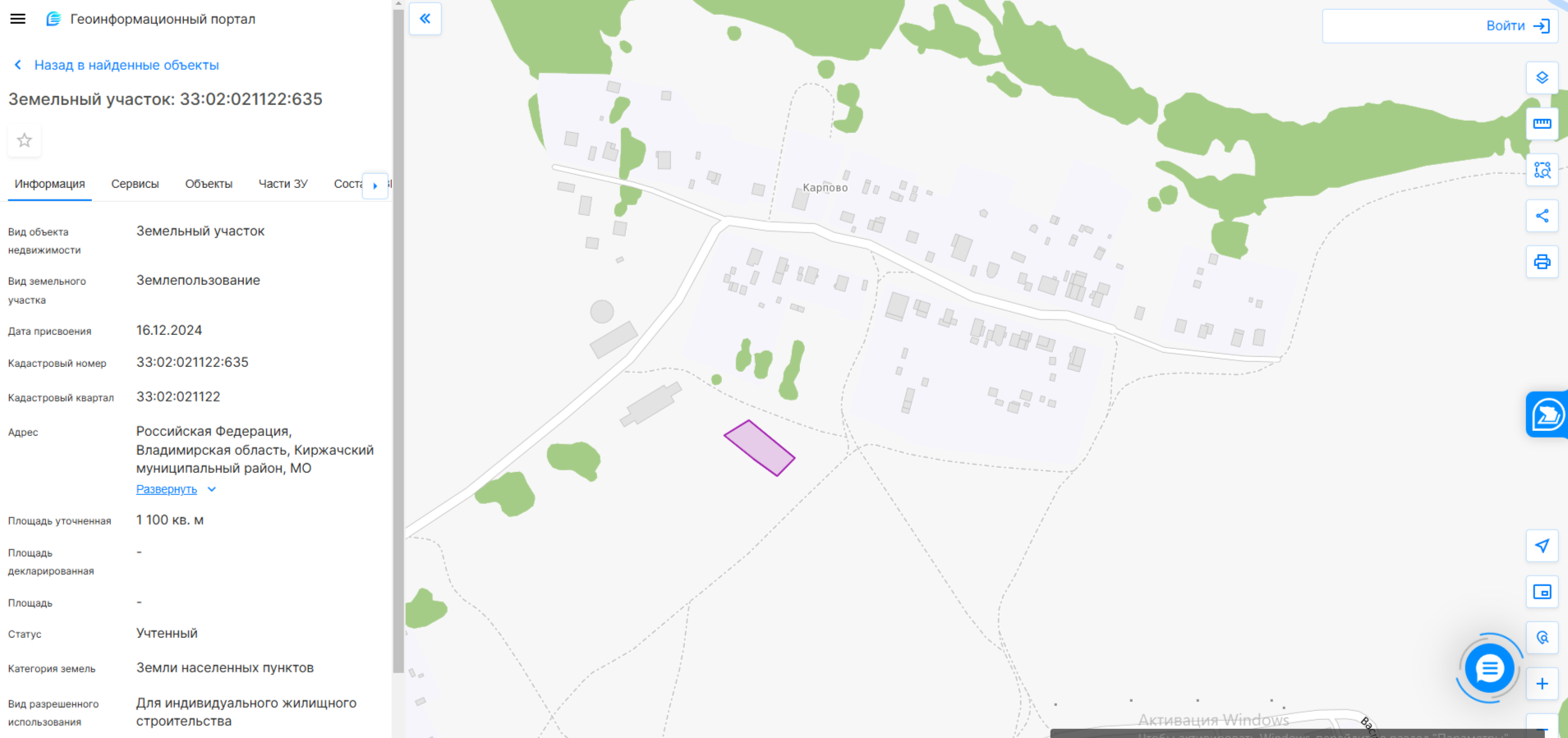 электронный аукцион на право заключения договора купли-продажи земельного участка с кадастровым номером 33:02:021304:436, площадью 1435 кв. м, из категории земель населенных пунктов, с разрешенным использованием: для индивидуального жилищного строитель